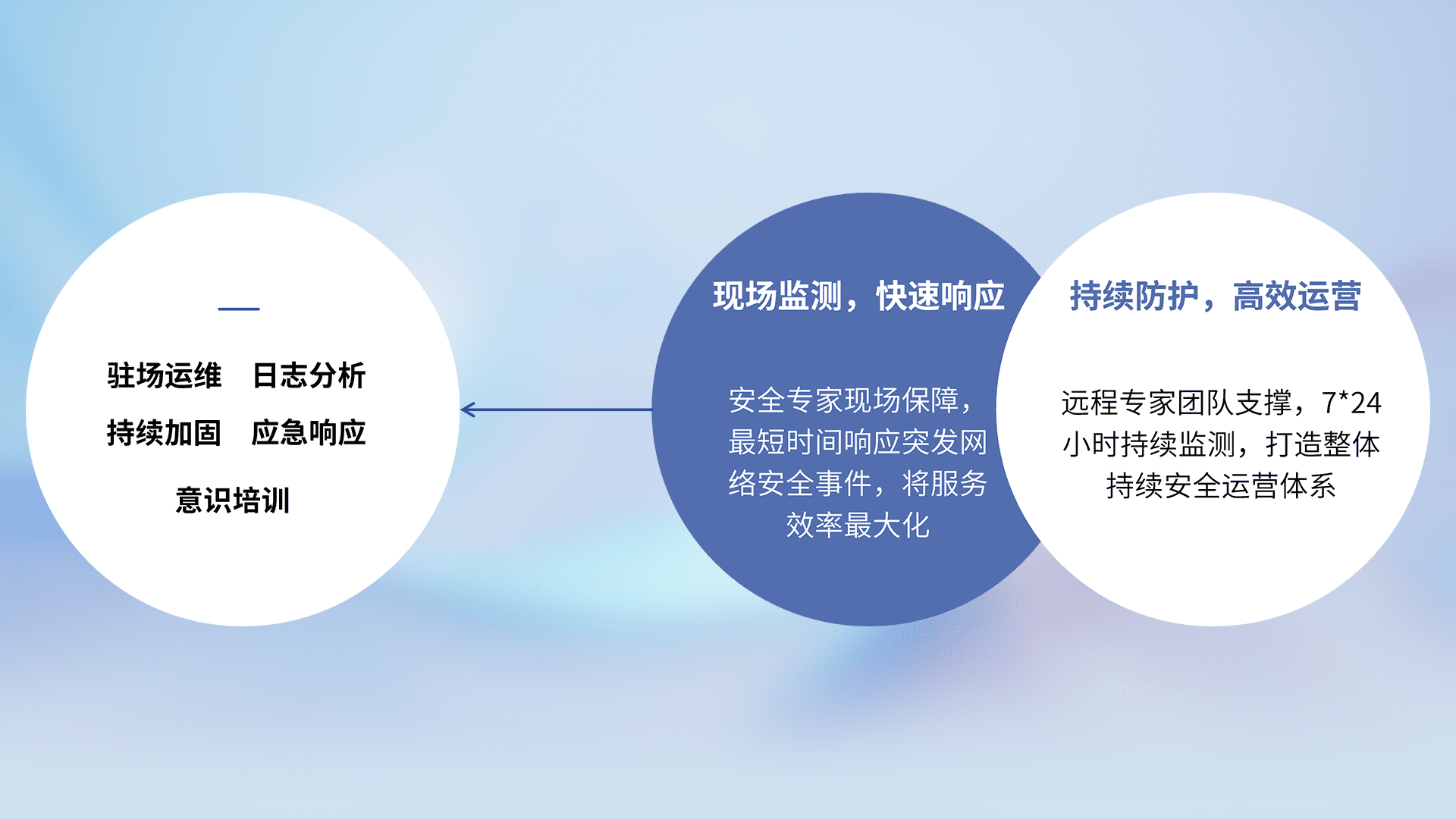 针对客户行业特性,,,提供专属的一站式安全管理服务,,帮助客户全面感知网络空间威胁,,,,通过安全专家的线上、、、、线下防护支持,,,,实现风险闭环,,,将安全保障常态化,,,,为客户打造常态化安全运维运营服务。。。